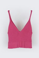 Blusa Alça Cropped Tricot Canelado Rosa Opera