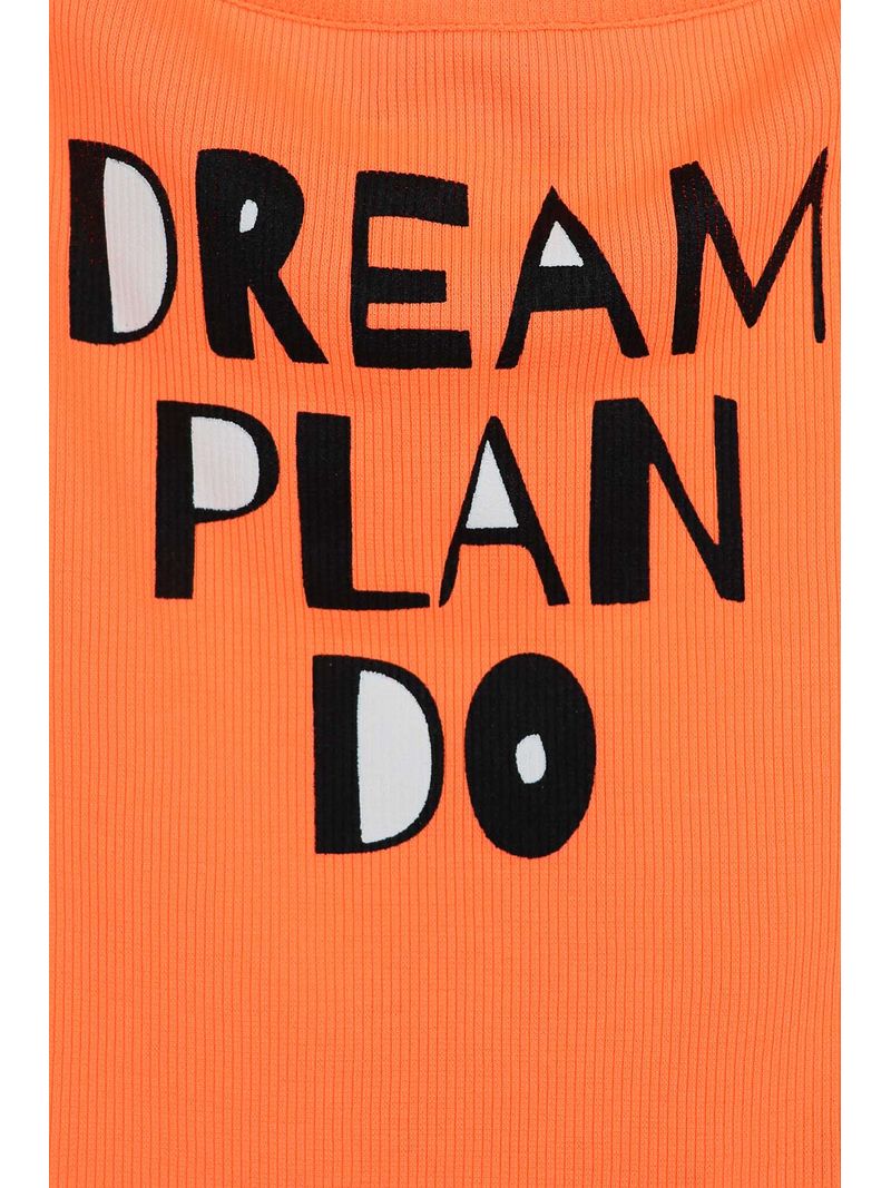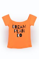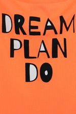 Blusa laranja neon, canelada com decote canoa e serigrafia Dream Plan Do