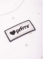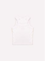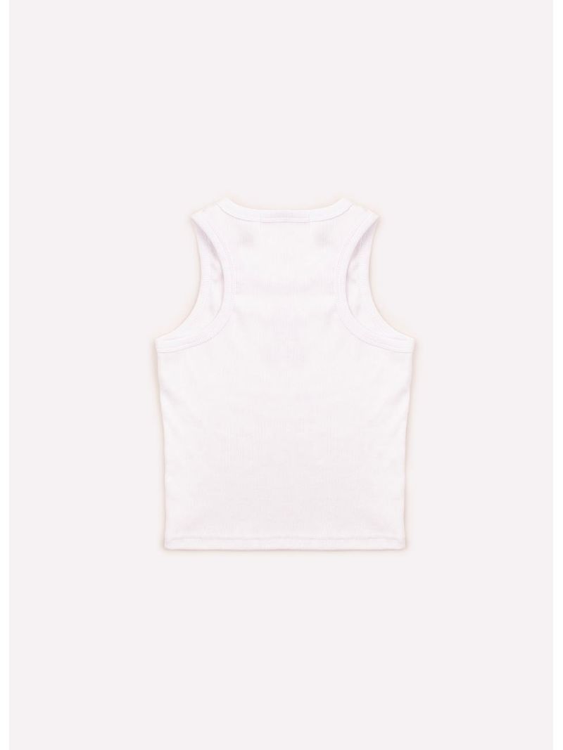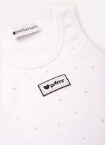 Blusa regata de ribana. Gola redonda. Detalhe frontal com aplicação de cristais e do logo PRFMR. Esta blusa é confortável e atemporal.