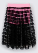 Saia com bermuda em light e sobreposição saia de babados em tule. a linha light possui proteção solar +50, que bloqueia a passagem de raios solares ultravioletas, protege a pela da ação dos raios uv-a e uv-b, e com eficiência de proteção solar permanente, não saindo com as lavagens, com teste realizados com base na norma as/nzs 4399:1996.