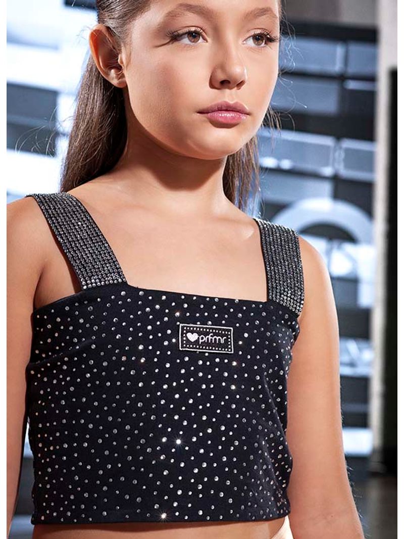 Top alça de algodão em modelagem cropped. Alças com aplicação de cristais. Detalhe com aplicação de cristais e o logo PRFMR. Este top é confortável e atemporal, faz diversas combinações com outras peças da coleção.