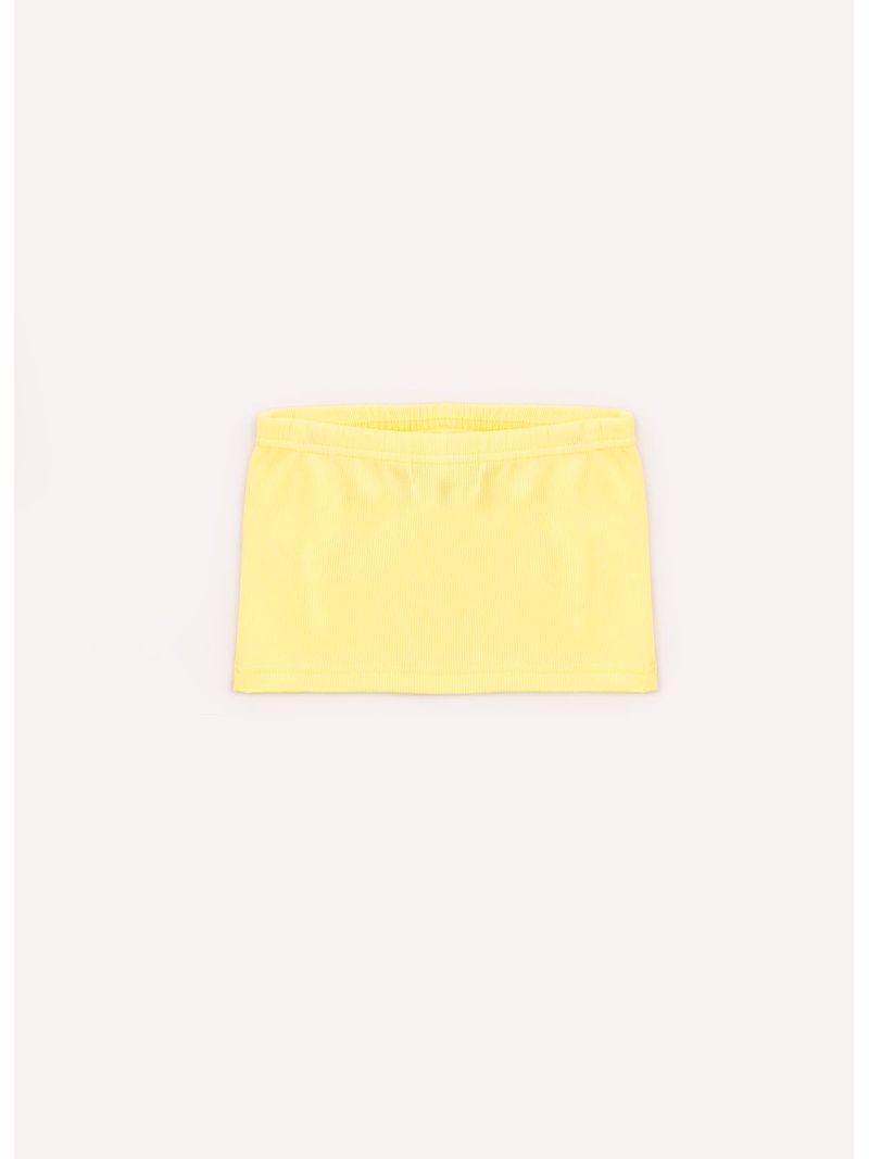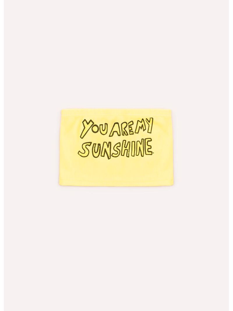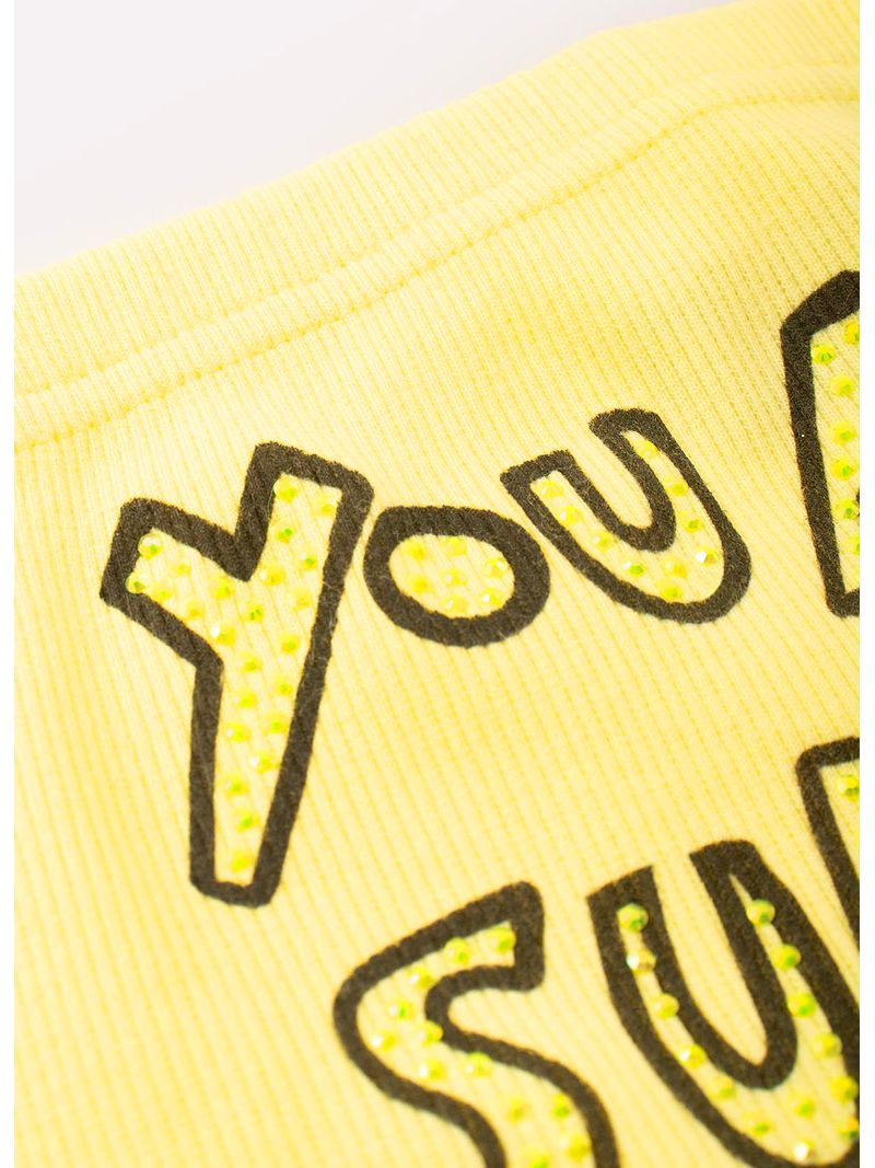 Top tomara que caia em ribana com estampa serigrafada e aplique de cristais.