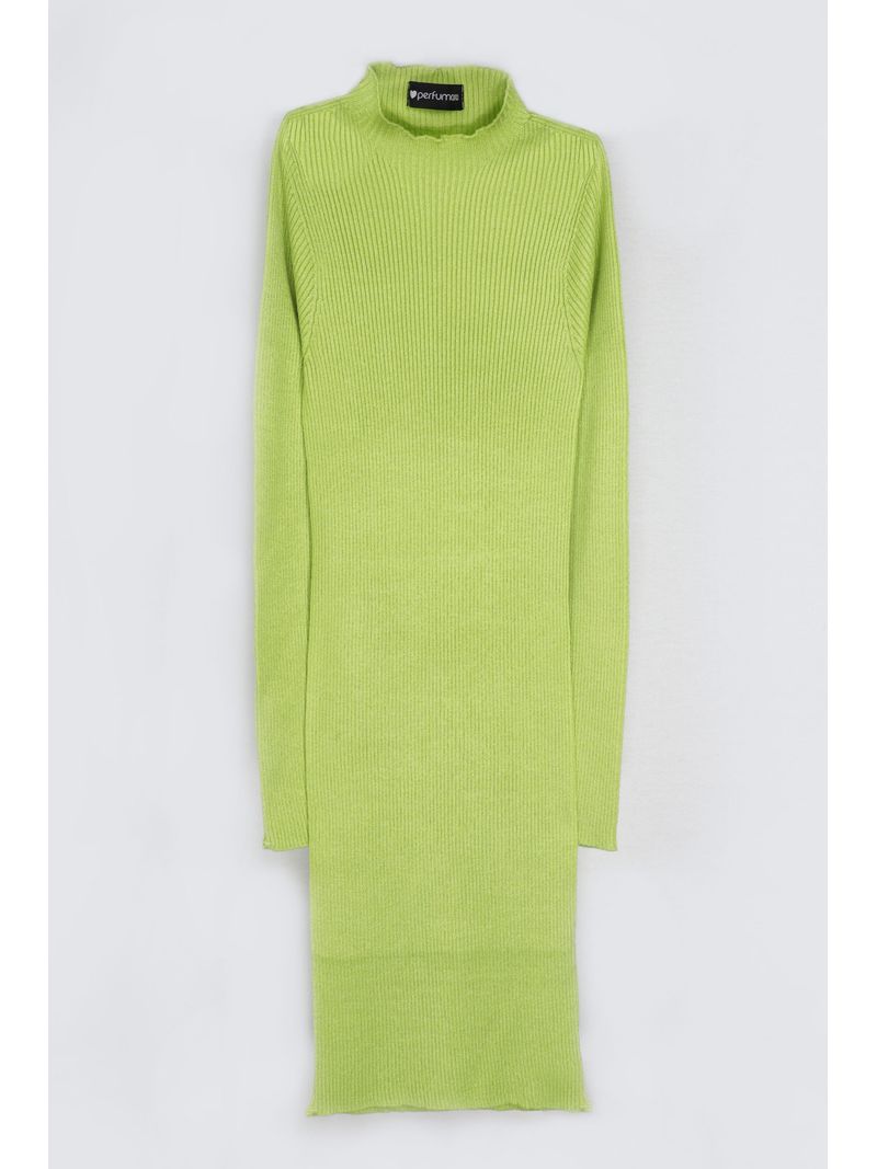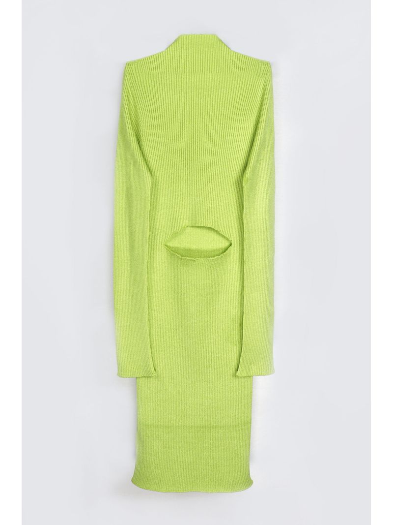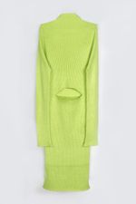 Vestido de manga longa em tricot canelado com recorte nas costas.